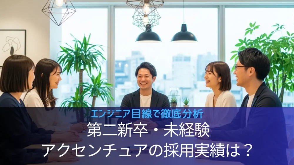 「理想のキャリアを、実装する。」エンジニアキャリア編集部です。 アクセンチュアへの転職を検討している20代・30代の皆さんの中には、第二新卒や未経験からでも世界最大級のコンサルティングファームでエンジニアとして通用するのか、不安を感じている方... -